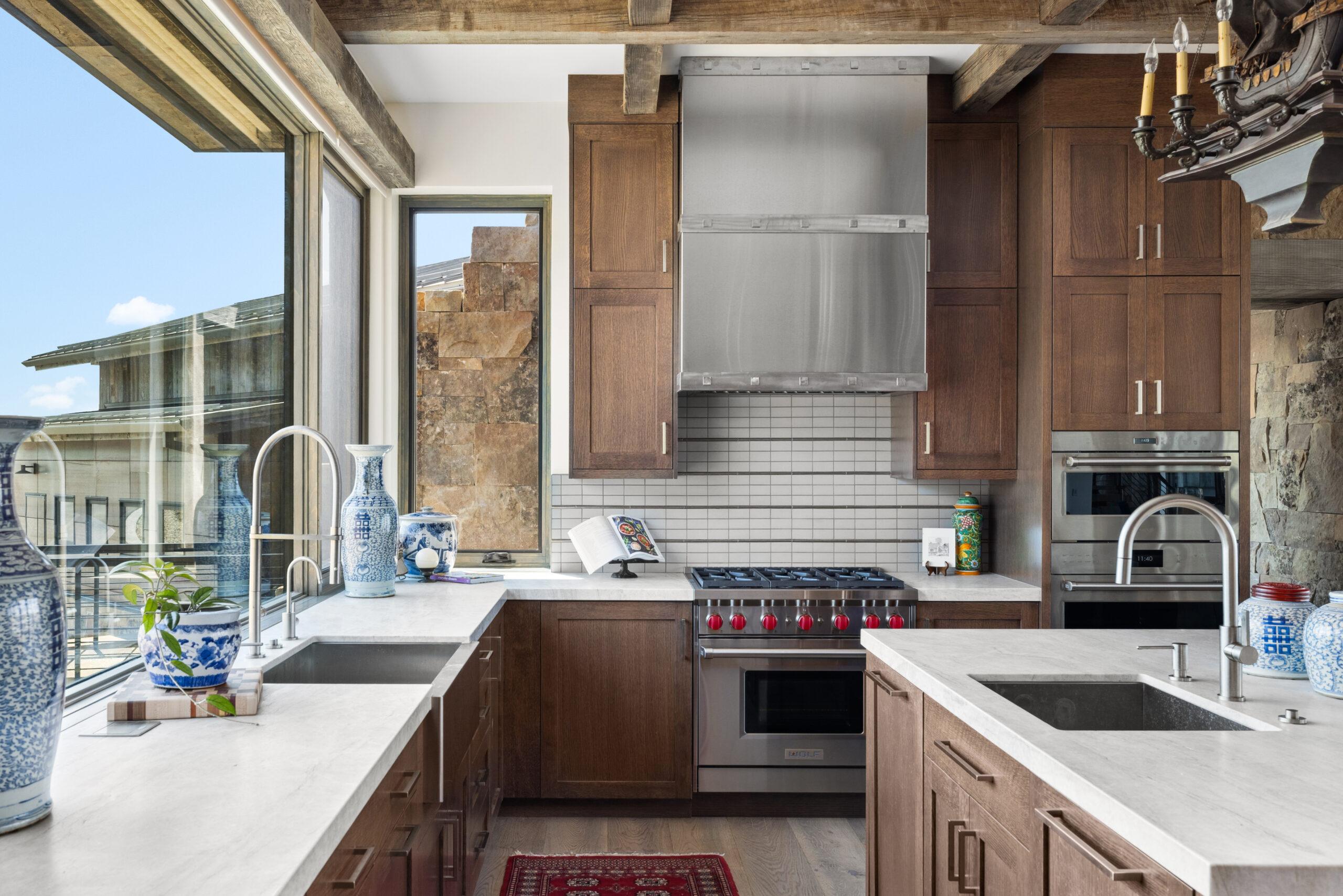 Designed by Annex Architecture, this stunning Park City home showcases a sophisticated exterior of weathered steel, expansive glass, and natural stone, while seamlessly integrating metal and wood elements throughout. Inside, soaring double-height ceilings, exposed wooden beams, and floor-to-ceiling windows flood the space with natural light, framing spectacular water views from every room. The open-concept design features a gourmet kitchen with sleek cabinetry in warm tones, fostering a cozy atmosphere that flows harmoniously from one space to the next. Multiple outdoor living spaces, including a stunning cantilevered deck, provide immersive vantage points for experiencing the tranquil surroundings, making this property both a private sanctuary and a celebration of its magnificent setting—a timeless yet extraordinary vision inspired by both the client and the unique site.
