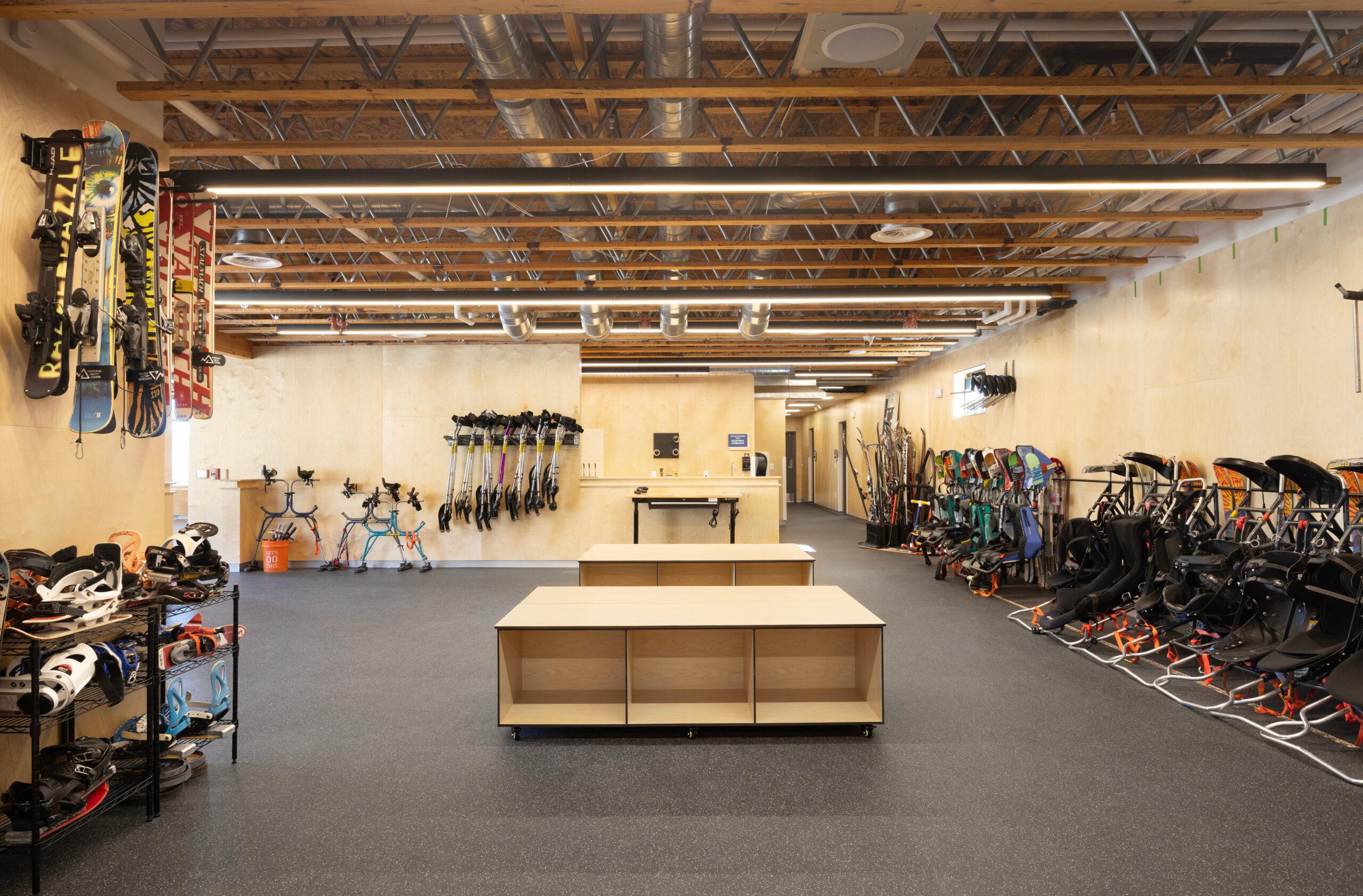 The completion of the McGrath Family Mountain Center at Park City Mountain Resort replaced the existing outdated and cramped double-wide trailer at the base of the Park City Mountain Resort. This new building allows the NAC to expand the ski and snowboard programs that they currently offer to participants and provide space for more than 60 employees and volunteers. This innovative building now accommodates skiers and boarders of various ability levels – allowing participants to exit the building and easily transition to the snow surface of the largest ski resort in the United States. The new 9,400 SF facility includes lobby space, equipment fitting and rental space, expandable training rooms, dining space for participants, offices, meeting rooms, locker facilities, and plenty of wheelchair storage space.