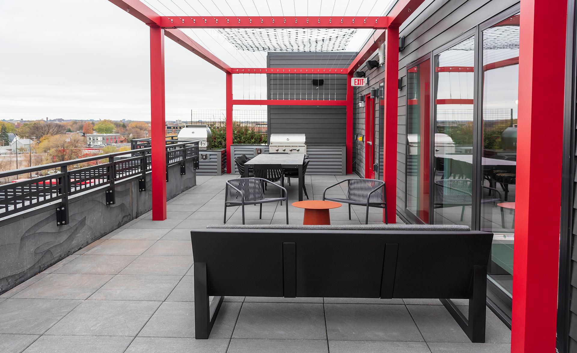 Tyler Street Stacks is a new high-end, multi-family housing project located near downtown Minneapolis. The six-level building is a wood-framed structure containing a mix of 118 studio, one-bedroom, and two-bedroom units, 11 affordable housing units, and 4,824-sf of retail space. It features a two-level residential parking garage with 79 parking spaces. Construction of resident amenities included 6th level lounge with serving kitchen, two podcasting rooms, an indoor pet exercise area, micro-offices, a fitness center and yoga room, co-working spaces, and bike storage. Exterior scope elements included construction of a 2,444-sf sport field on top of the parking garage and an outdoor community deck with fire pits, grill station, and pizza oven, as well as landscaping and site improvements.